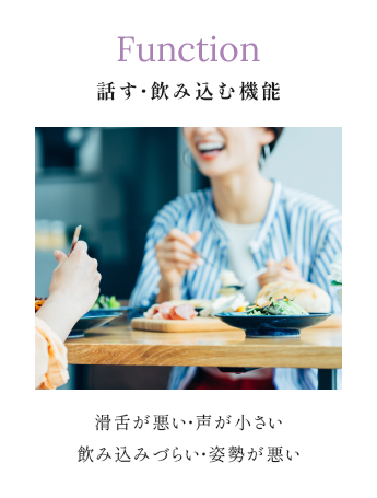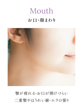発音や呼吸、姿勢にも深く関わっている口腔の機能。舌や舌骨上筋群、咀嚼筋、表情筋など——お口の内外から丁寧にアプローチすることで、こわばりをゆるめ、癒着をはがし、本来のバランスを取り戻します。